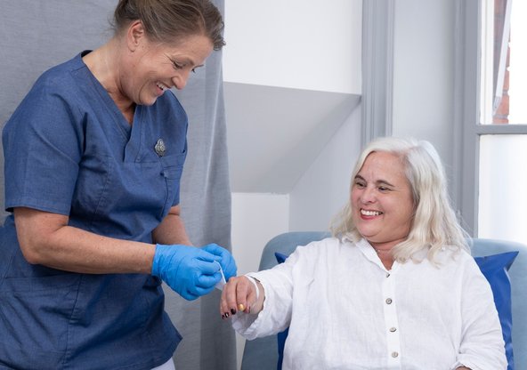 Våra sjuksköterskor hjälper exempelvis till med att lägga om sår, ta bort stygn, vaccinera eller administrera injektioner.